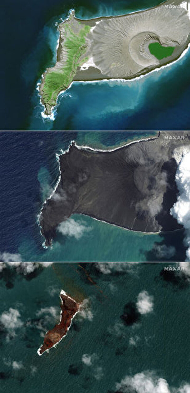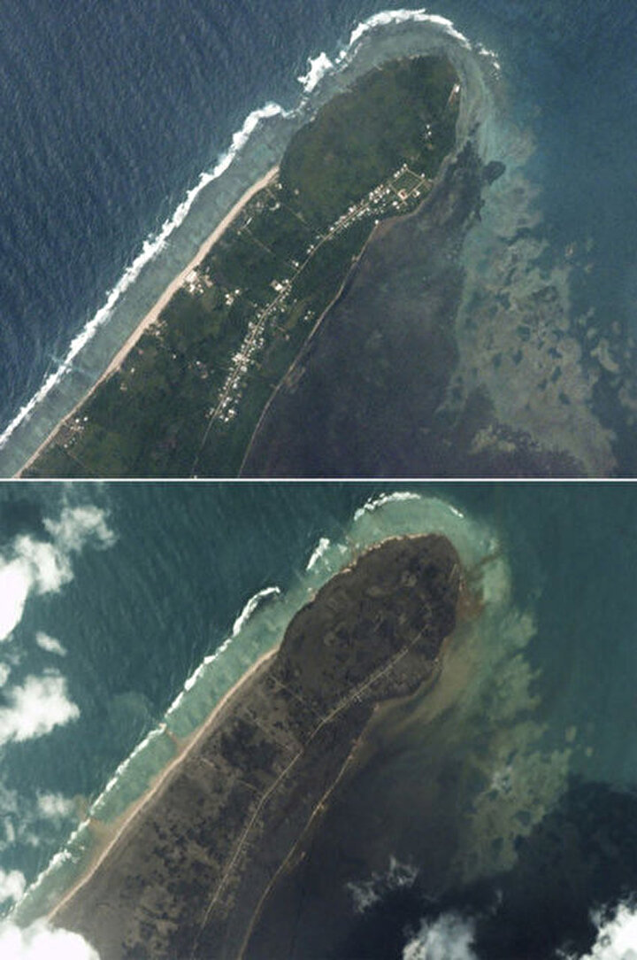 Büyük Okyanus'ta yer alan ve 169 adadan oluşan Tonga'da hafta sonu gerçekleşen yanardağ patlamasının ardından tsunami vurdu. Yaşan olaylar nedeniyle ülke bir kül tabakasıyla kaplandı. Okyanusun altında bulunan ana iletişim kablosunun kopması nedeniyle haber alınamayan ülkeye keşif uçakları gönderiliyor. Havadan çekilen fotoğraflar, Tonga'nın tsunami ve volkanik patlamanın yol açtığı felaket nedeniyle ağır bir şekilde tahribata uğradığını gösterdi. Bazı bölgeler adeta haritadan silinirken, neredeyse sağlam bina kalmadı.