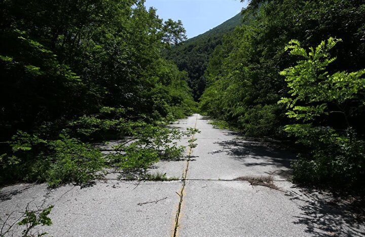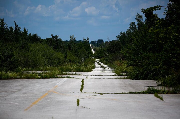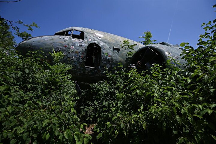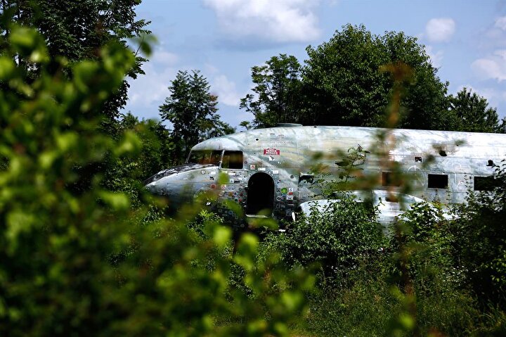 Zamanın yüksek teknolojisiyle üretilen uçakların indiği pistler, üzerinde biten otlarla çevrili halde duruyor. O dönemden kalan tek uçak ise kendisini çevreleyen çalıların arasında zamana direniyor.