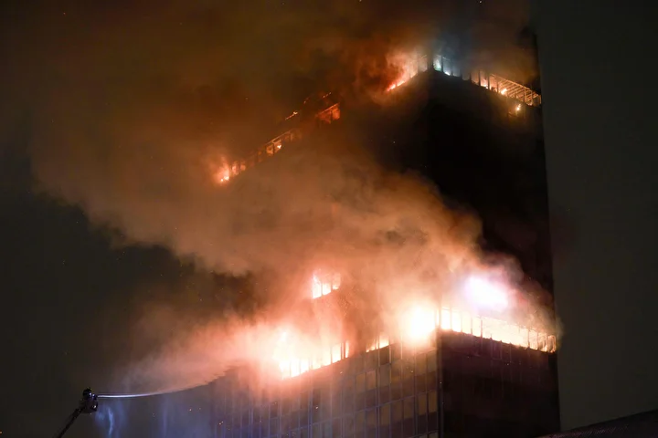 1972 yılında inşa edilen ve birkaç yıldır atıl durumda bulunan gökdelen, tamamen kül oldu.