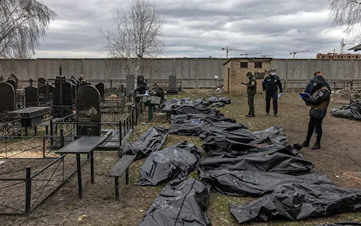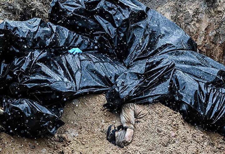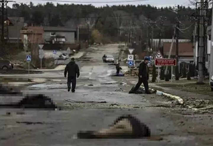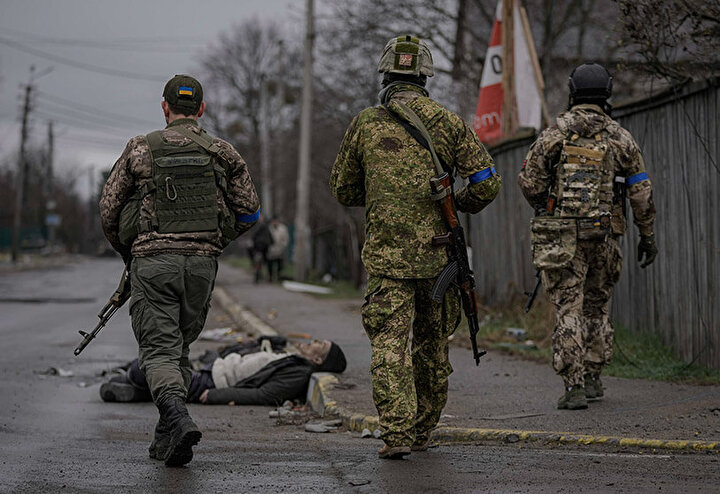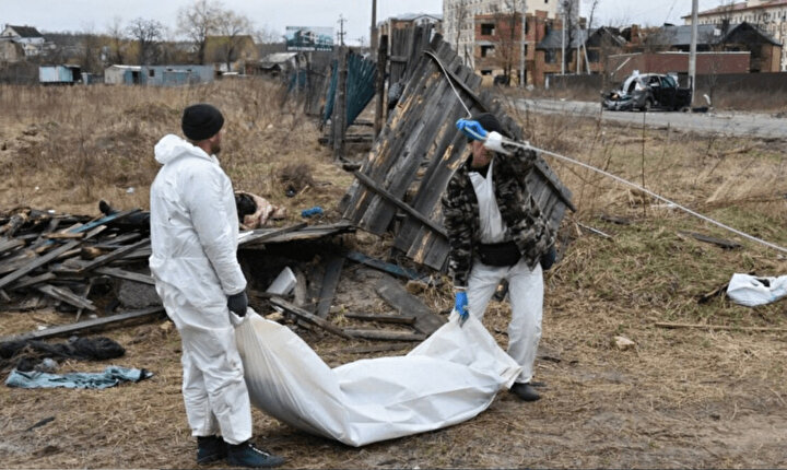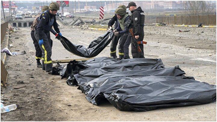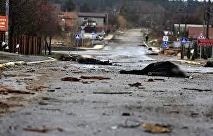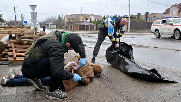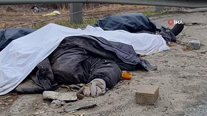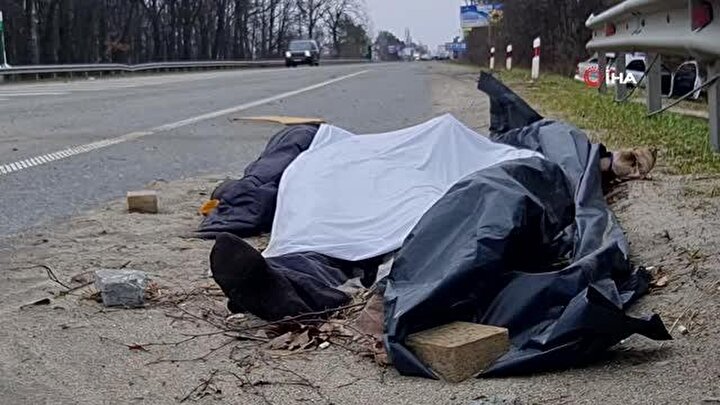 Ukrayna güçleri günlerdir sokaklardan ve araçlardan sivil insanlara ait cesetleri toplasa da Bucha ve çevresinde hala bir sürü ceset yollarda bulunuyor.