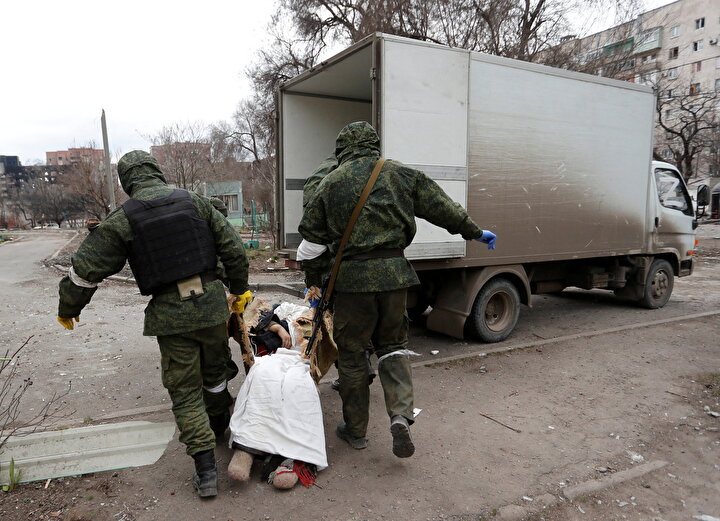 Rusların Mariupol'da kapsamlı provokasyonda bulunacaklarına dair bilgiler edindiklerini belirten Zelenskiy, "Mariupol'deki kurbanları, sanki onları öldüren Rus ordusu değil de Ukraynalılarmış gibi gösterecekler. Sokaklardan cesetleri topluyorlar ve bunları propaganda senaryolarına göre başka yerlerde kullanılabilirler. ''