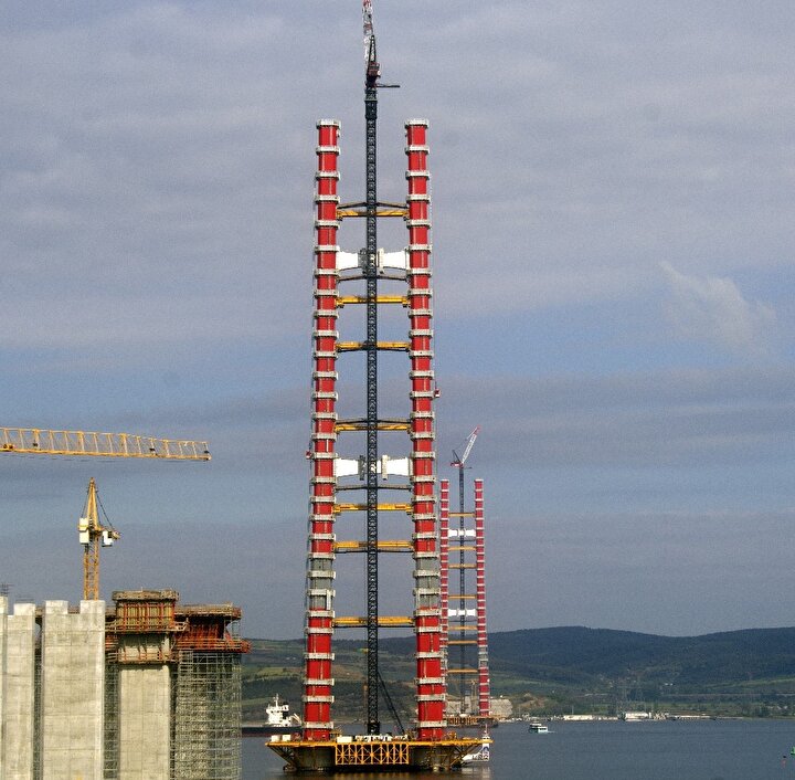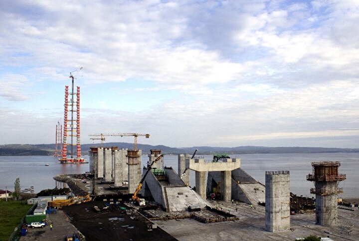 Cumhurbaşkanı Recep Tayyip Erdoğan tarafından 18 Mart 2017’de temeli atılan ve Çanakkale’nin Lapseki ilçesine bağlı Şekerkaya ile Gelibolu’nun Sütlüce mevkii arasında yapımı süren 1915 Çanakkale Köprüsü’nün ayakları her geçen gün yükselmeye devam ediyor.