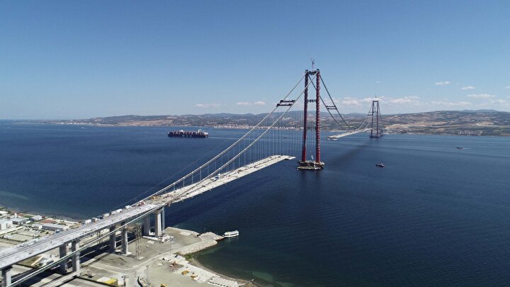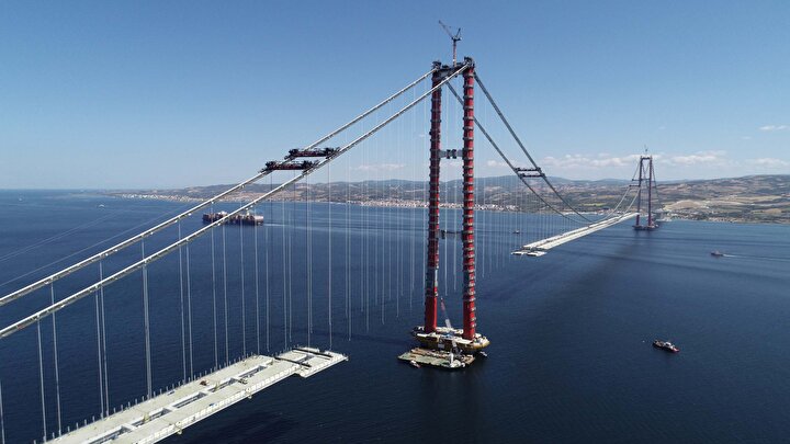 Beş bine yakın çalışan ile 24 saat aralıksız devam eden çalışmalar sonucu Çanakkale Köprüsü'nün büyük bölümü 4,5 yılda tamamlandı. Köprünün açılışına ise 6 ay kaldı.
