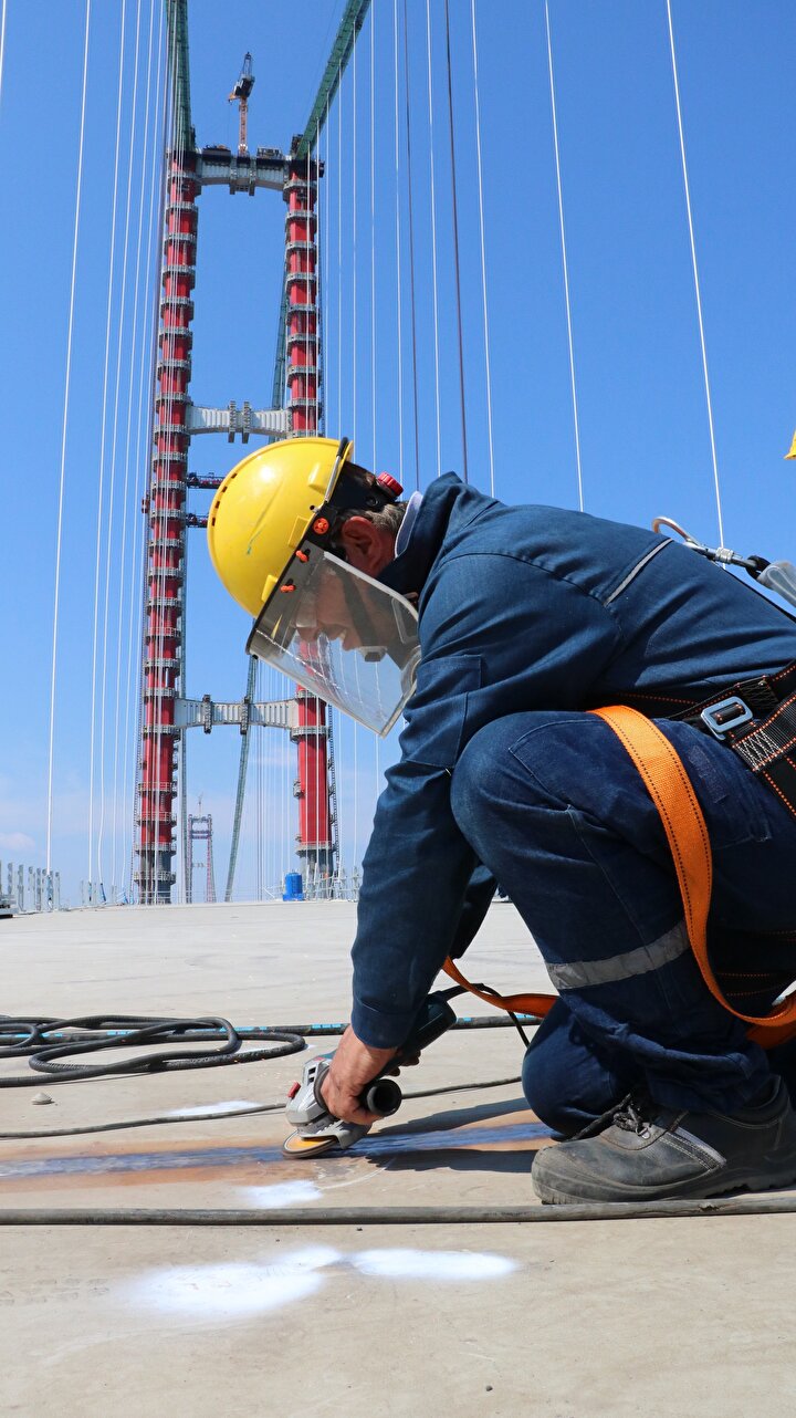 Köprüde, montajı tamamlanan tabliye bloklarının birbirine kaynak çalışmaları da devam ediyor. Araçların geçeceği yolda son olarak asfaltlama çalışmaları yapılacak.