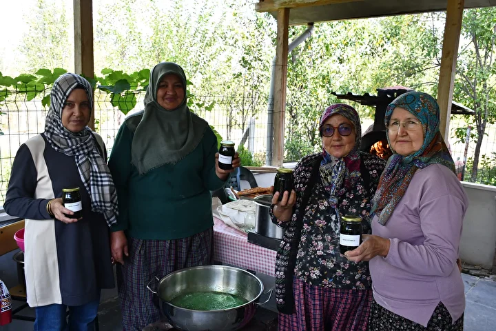 Bilecik'te kadın girişimci Melahat Korkmaz, evinin bahçesinde yetiştirdiği taze nanelerden ürettiği yeşil renkli nane pekmezini İstanbul, Bursa, Eskişehir ve Sakarya gibi kentlerdeki alıcılara gönderiyor.