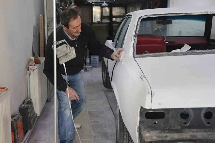 Kaporta, boya, döşeme ve elektrik işlemlerini tek başına yapan Kıcıklar, klasik araçların tamamen sökülüp yeniden toplandığını, sürecin aylar sürdüğünü belirtti.