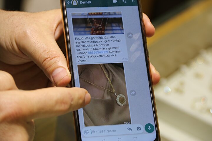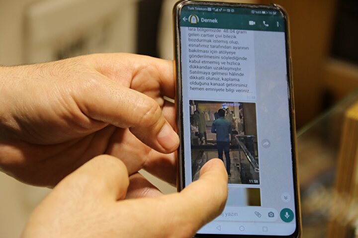 Kuyumcular kendilerine gelen ihbarın ardından saniyeler içerisinde harekete geçerek, birbirlerini sözlü olarak da uyarıyor. İhbar üzerinden gelen ürünü uzun uzun inceleyen kuyumcular, kendilerine gelen benzer ürünler üzerinden harekete geçerek şüpheli şahısları polise bildiriyor.