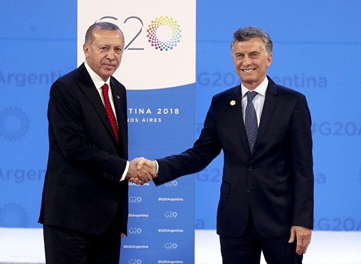 Cumhurbaşkanı Erdoğan, dünya liderlerinin bir araya geldiği G-20 Zirvesi’nin yapılacağı alanda Arjantin Devlet Başkanı Mauricio Macri tarafından karşılandı.