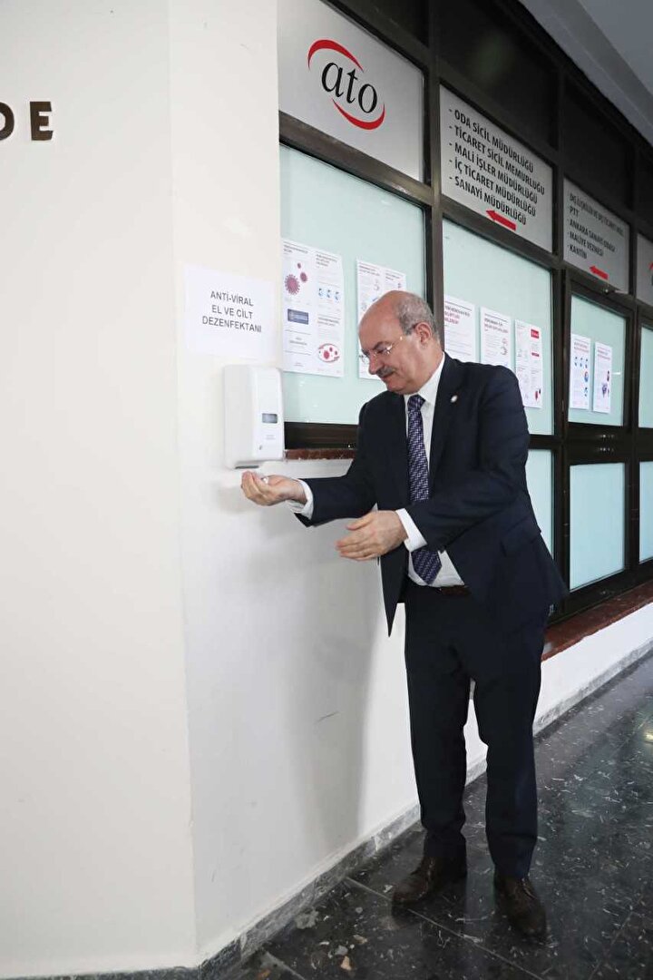 Bina içerisinde çeşitli alanlara yerleştirilen ve ATO personelinin masalarına dağıtılan el dezenfektanları ile üye ve personelin el hijyeni sağlanırken; Sağlık Bakanlığı tarafından hazırlanan afiş ve broşürler sayesinde bilgilendirme yapılıyor. Hizmet binası içinde ve dışında yer alan led ekranlarda Sağlık Bakanlığı’nın bilgilendirici filmleri oynatılıyor. Ankara Ticaret Odası’nda kurum içinde yiyecek ve içecek servislerinde de tek kullanımlık bardak ve tabaklar kullanılmaya başlandı.