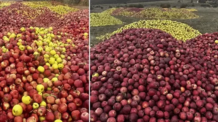 Türkiye'nin elma üretiminde ilk sırasında yer alan Isparta'da, yağışların az olması sebebiyle büyümeyen ve dolu hasarına maruz kalan elmalar alım merkezlerinde toplanarak meyve suyu üreten fabrikalara taşınıyor.