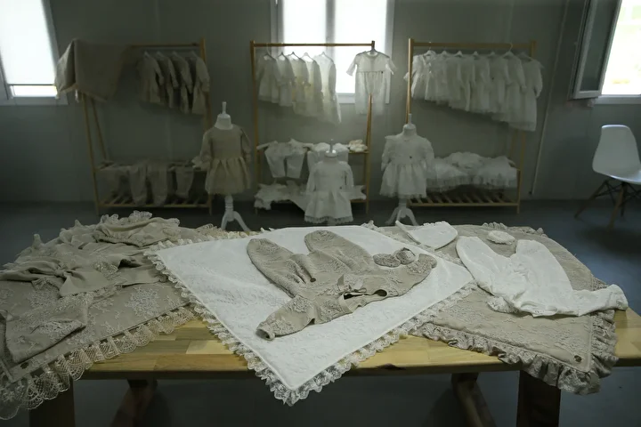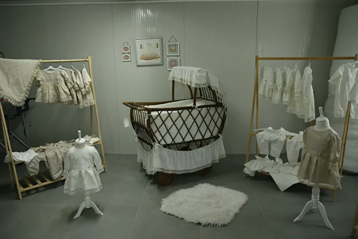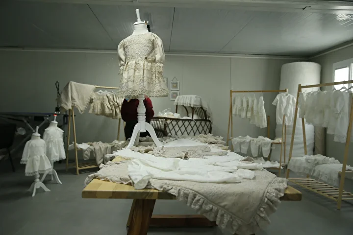 "Bizler burada organik bebek kıyafetleri üretiyoruz. Bir bebeğin doğduğu andan itibaren ihtiyaç duyabileceği her şeyi üretebiliyoruz ve bu ürünler üzerinde kişiselleştirmeler yapabiliyoruz, bunlar annelerimiz için çok kıymetli oluyor. Kız çocukları için de 3 aydan 14 yaşa kadar değişik kostümler üretiyoruz...