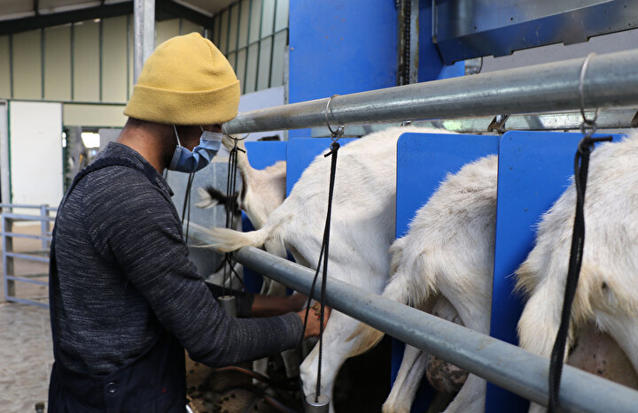 Üretimin yüksek hijyen şartları altında yapıldığını aktaran Aslan, "Keçilerin kulaklarında bulunan bir sistemle bilgisayardan nerde sağıldığını, her keçiden günde kaç litre süt aldığımızı görüyoruz. Bu sistemle 10 dakikada 24 keçi sağılıyor. Teker teker giriyorlar...
