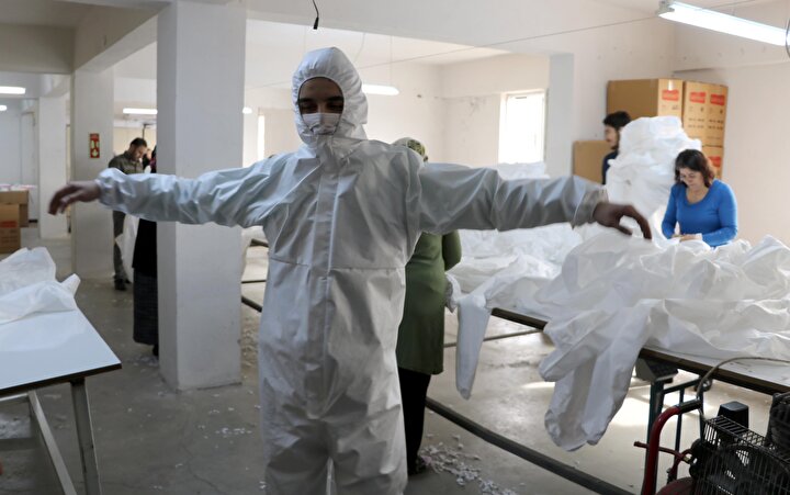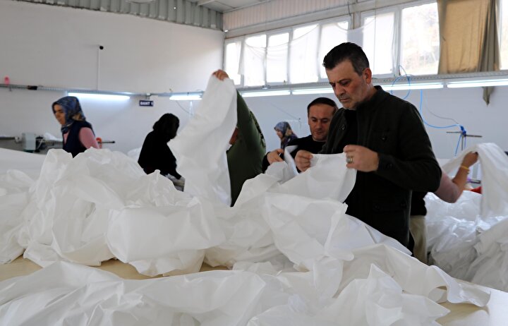 Zonguldak'ın Çaycuma ilçesine bağlı Karapınar beldesinde, askeri kıyafet üretimi bırakılarak koronavirüse karşı sağlık görevlilerinin giydiği koruyucu tulum üretilmeye başlanan tekstil fabrikasında, siparişleri karşılamak için vardiya sayısı artırıldı. Fabrikada, Çin, Rusya, İtalya ve İran başta olmak üzere birçok Avrupa ülkesinden gelen 1 milyon tulum talebini karşılamak için gece gündüz üretim yapılıyor.