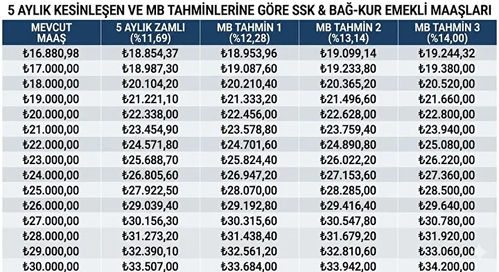 Merkez Bankası senaryoları: Yıl sonu enflasyonunun %31, %32 veya %33 gelmesi durumuna göre emekli zammı sırasıyla %12,28, %13,14 veya %14 bandında gerçekleşecek.