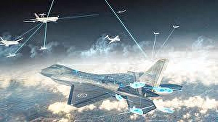 Milli Muharip uçağımız. Birebirine yakın prototipi. Bu 5 nesil savaş uçağı. Radarlar göremez. Çünkü radyo dalgalarını yutar, yansıtmaz. Hava savunma sistemini geçmek istiyorsanız bu uçağın radyo dalgalarını geri göndermemesi gerekiyor. Isı düşünce çıkardığı radyasyon da düşer ışık olarak. Motor havasın ayarlayarak daha soğuk verecek bir sistem var. Hem radarı yansıtmıyor hem de kendisi lamba gibi gökyüzünde yanmıyor. Kenarları keskin. Biz havacılıkta keskin kenarı hiç sevmeyiz. Bunun her tarafında radar var. Bu bir uçak değil, savaş sistemi. Etrafını kolluyor, gelen gidenlere bakıyor.