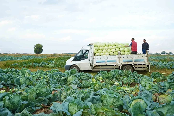 Tarlada ortalama 100 liraya, kilogram bazında ise 14-15 lira civarında satışa sunulan lahanalar, çevre illere ve il içinde satışa sunuluyor.