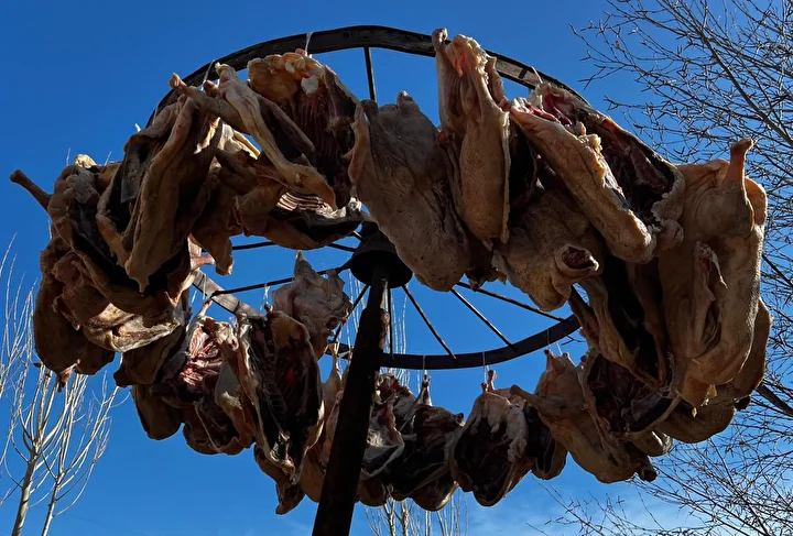 Kars'ın Arpaçay ilçesinde kaz yetiştiren Çetin Cengiz, gurbette yaşayan hemşerilerinin talebi sonrası kesimini yaptığı 900 kazı kurutmaya bıraktı.
