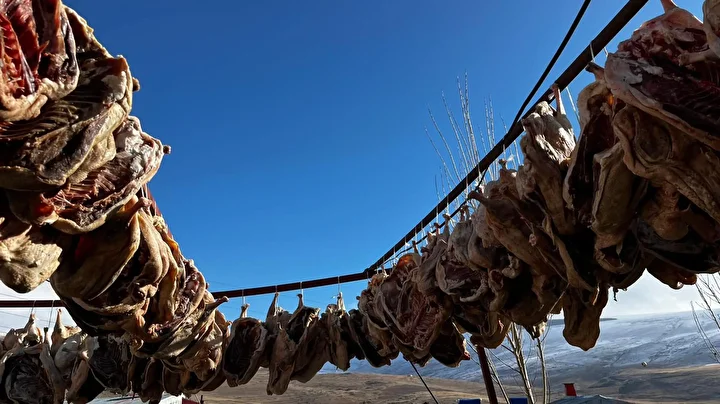 10 gün süreyle açık havada kurutulan kazlar, başta İstanbul olmak üzere gurbetteki Karslılara gönderilecek.