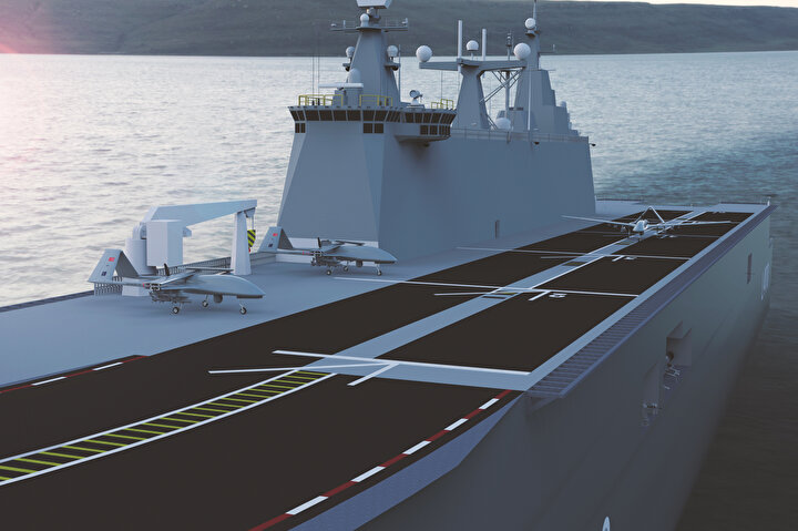 Yıl sonuna kadar envantere alınacak 232 metre uzunluğundaki Türkiye'nin en büyük savaş gemisinde helikopterlerin yanında hava aracı olarak SİHA'lar da görev yapacak.