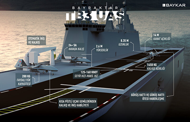 Bayraktar TB3 LHD sınıfı gemilerden kalkış-iniş için geliştirilen MALE sınıfı ilk SİHA olacak.