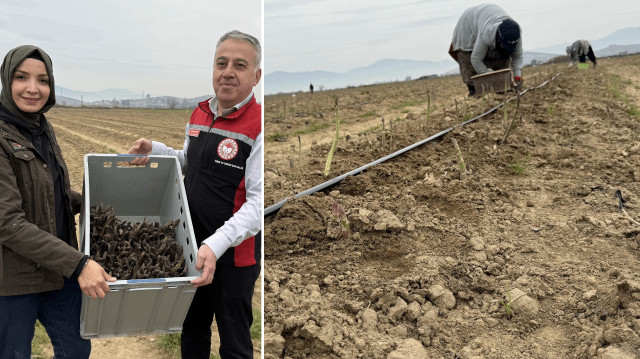 İlçede ilk kez üretilen ve kuraklığa karşı dayanıklılığıyla bilinen kuşkonmazın hasadına İzmir İl Tarım Orman Müdürü Mustafa Şahin'in katılımıyla başlandı.