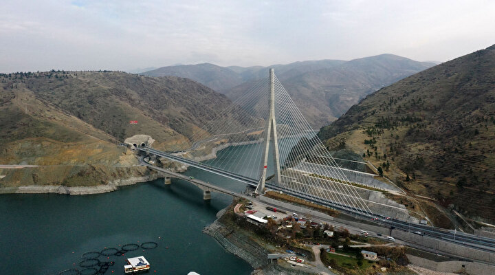 İhtişamlı görüntüsüyle dikkati çeken ve 42 adet kablo imalatı gerçekleştirilen köprünün orta açıklığı 25 çelik segmentten oluşuyor.