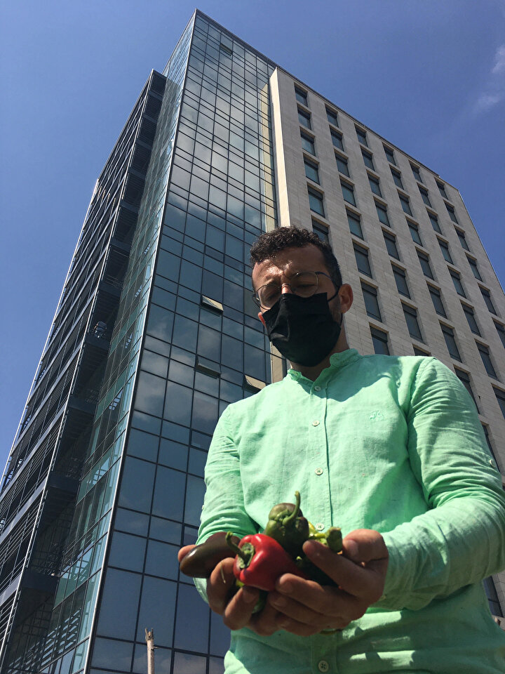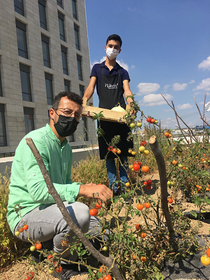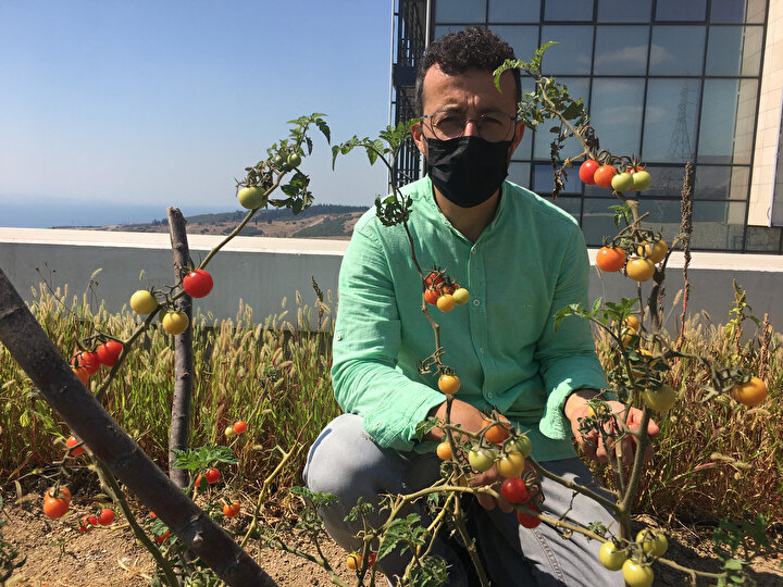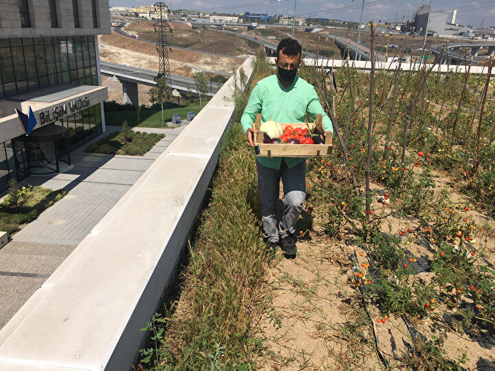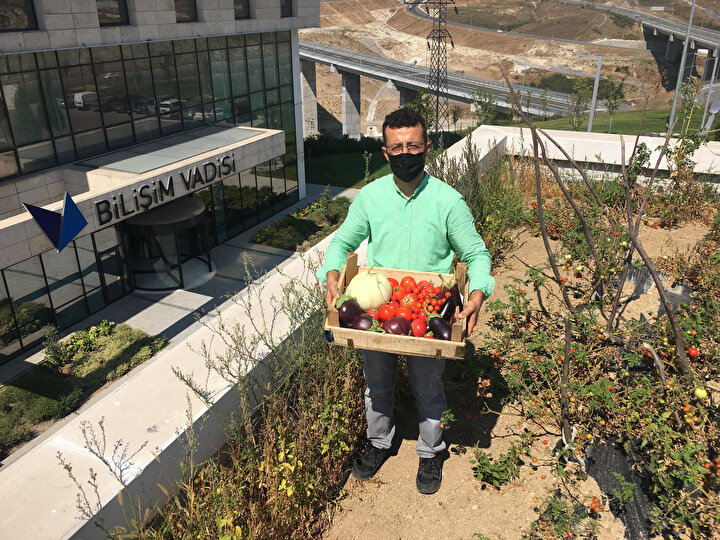 Tarıma ilgisi olan Karataş, yaklaşık 2 yıl önce Bilişim Vadisi içerisinde bulunan bir binanın çatısını organik bahçe olarak kullanıp meyve ve sebze yetiştirmeye karar verdi.