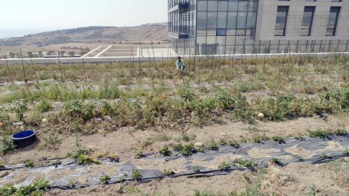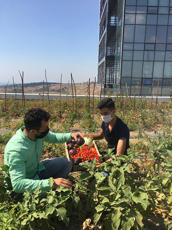 Yerli otomobilin merkez üssünün de bulunduğu Kocaeli'nin Gebze ilçesinde bulunan Bilişim Vadisi'nin çatısındaki görüntü görenleri şaşırtıyor. Bilişim Vadisi'nin içerisinde yer alan binaların çatısında organik tarım yapılıyor. 700 metrekarelik alanda domates, biber, salatalık, patlıcan, kabak ve yeşil sebzelerin yanı sıra kavun dahi ekilmiş durumda. Vadi'nin çatısında yetişen ürünleri çalışanlar ücretsiz olarak toplayabiliyor.