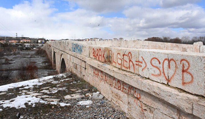 Sivas'ta Anadolu Selçuklu Devleti zamanında Kızılırmak üzerine 1200'lü yıllarda yaptırılan Tarihi Eğri Köprü ve 1213 yapımı Kesik Köprü sık sık sprey boyalı yazıların hedefi oluyor. Görevlilerce her defasında silinmesine ve uyarılara rağmen tarihi eserlere sprey boyayla yazı yazma alışkanlığı bitmiyor. Sivas Cumhuriyet Üniversitesi (SCÜ) Mimarlık Fakültesi Mimarlık, Güzel Sanatlar ve Tasarım Fakültesi öğretim üyesi Doç. Dr. Uğur Tuztaşı, 10 liraya alınan bir sprey boya yazısını tarihi dokudan temizlemenin maliyetinin yaklaşık 50 bin lirayı bulduğunu söyledi.
