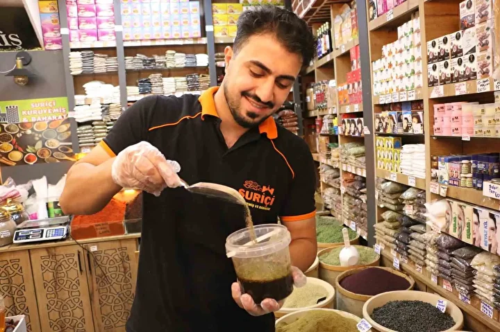 Merkez Sur ilçesi Hz. Süleyman Caddesi’nde bitkisel ürünler satan esnaf Ali Baran Çelik, 25 farklı bitkiden oluşan özel bir karışım yapıyor.