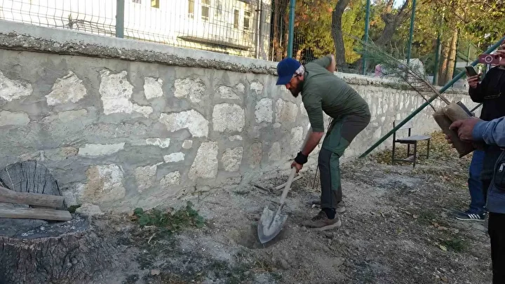 Ülkede yaşanan orman yangınlarının ardından Manisa’dan 5 Eylül 2021’de doğaya karşı duyarlılık oluşturmak için, ’Yoldaş’ isimli köpeğiyle yürüyüş başlatan Ömer Özer, bugün Burdur’da Burdur Lisesi bahçesine fidanı dikti.