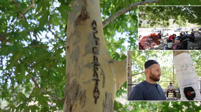 Tatlı satışı yapan Orhan Özdemir ise "Gölgesinde oturup serinliyorlar, sonra bıçakla isim kazıyorlar. Yaklaşık 45 yıllık bu ağacı korumak zorundayız. Korunmazsa gölgesinde oturamayız" diye konuştu.