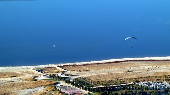 Kılıçaslan, uçuştan önce Avşar Tepe'den, uçuş sırasında paraşütten çektiği görüntülerle Türkiye'nin 7'nci büyük gölü olan Burdur Gölü'nün son durumunu gözler önüne serdi.
