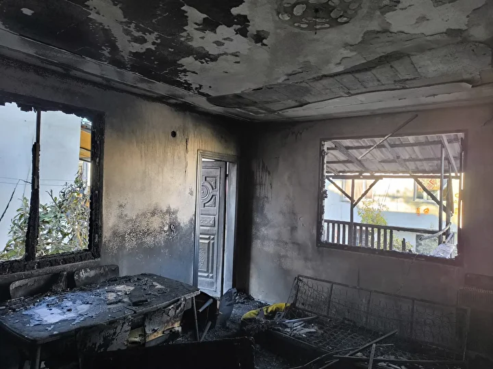 İhbar üzerine bölgeye sevk edilen itfaiye ekiplerince söndürülen yangında ev kullanılamaz hale geldi.
