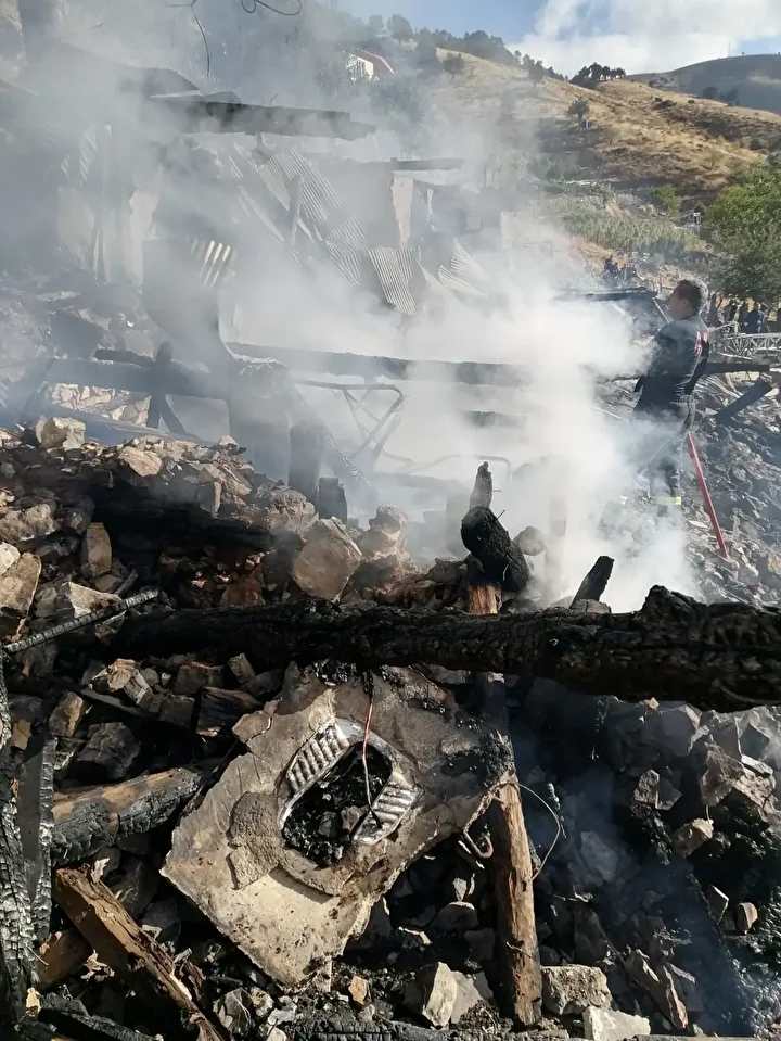 İhbar üzerine olay yerine sevk edilen itfaiye ekiplerinin uzun uğraşları sonucu çöken ev ile diğer ikametteki yangın söndürüldü.