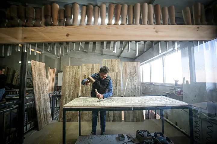 Bir siparişi önce projelendirdiklerini, ardından imalathanede işledikten sonra oymaya sıra geldiğini anlatan Kaptan, "Desenleri, çinici 2 arkadaşım çiziyor. İstediğimiz modeli anlatıyoruz, onlar tasarlayıp, çizip bana veriyor. Ben de oyuyorum." diye konuştu.