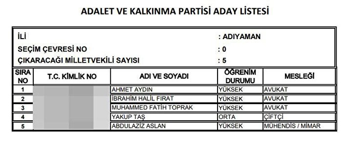 AK Parti milletvekili aday listesi Yüksek Seçim Kurulu'na teslim edildi. Mevcut AK Parti milletvekillerinden 167'si yeniden aday gösterildi. Listeyi Genel Başkan Yardımcısı Ahmet Sorgun YSK'ya götürdü.İşte AK Parti milletvekili adayları...