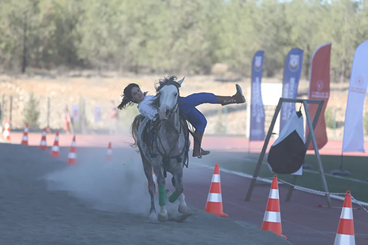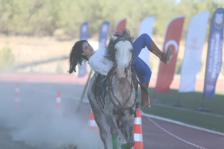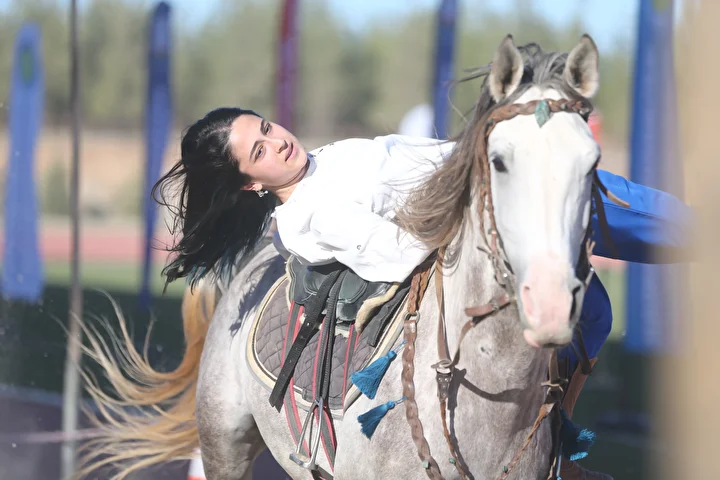 Babasından öğrendiği atlı akrobasi sanatını cesur hareketleriyle bir adım öteye taşıyan Dilara Özcan, dört nala giden atın yanında uzanarak sergilediği denge hareketleriyle beğeni topladı.
