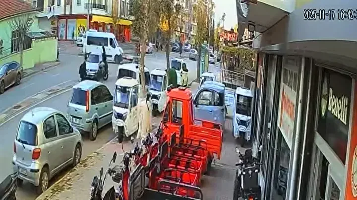 Aksaray'da kavşakta minibüsle çarpıştıktan sonra savrulan otomobil, elektrikli bisikletteki çocuğu çarptı. Bisiklet sürücüsü Nehir Atak’ın (13) yaralandığı kaza anı güvenlik kamerasına yansıdı.
