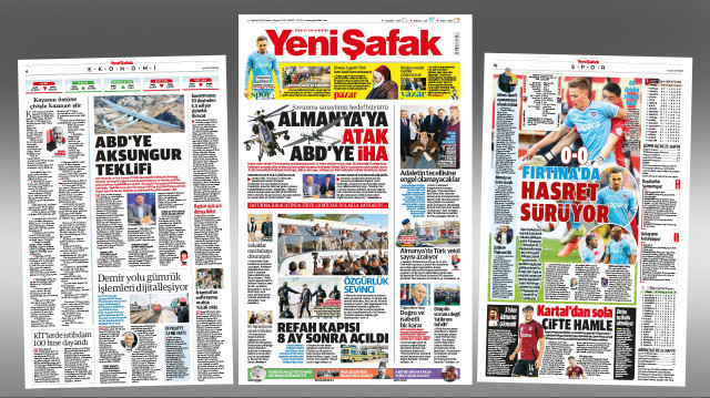 Yeni Şafak Gazetesi'nin 02 Şubat 2025 tarihli birinci sayfasında yer alan manşet ve haberler...