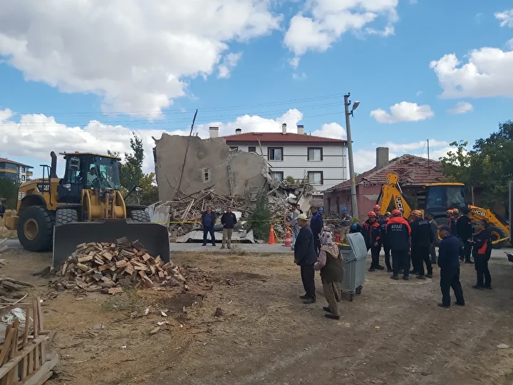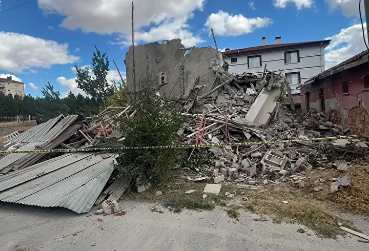 Bir yıldır metruk halde olan Harun ve Seyfi Kılıç'a ait 3 katlı aile apartmanı, henüz belirlenemeyen nedenle çöktü.
