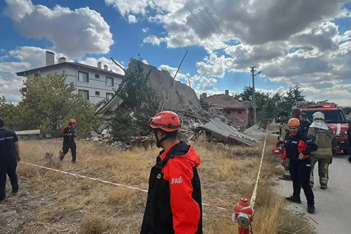 Ankara'nın Çubuk ilçesinde 3 katlı metruk bina çöktü. Ekiplerin binanın enkazında yaptığı aramalarda kimsenin olmadığı tespit edildi.