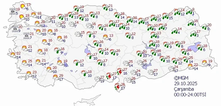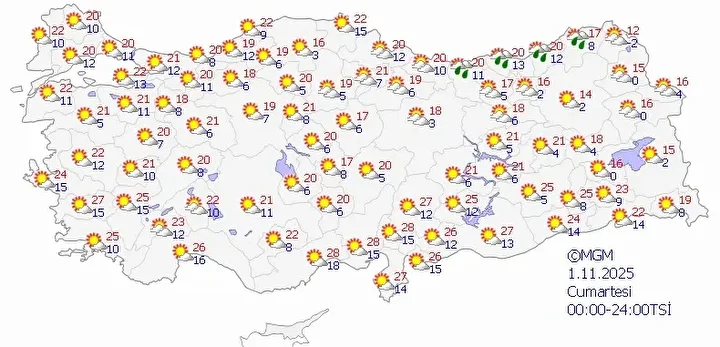Öte yandan Meteoroloji Genel Müdürlüğü'nün Türkiye geneli için öngördüğü beş günlük hava tahmin raporu ise şöyle: