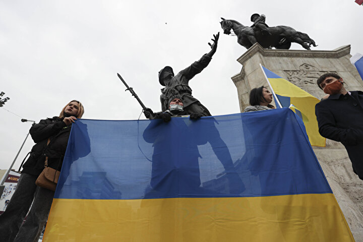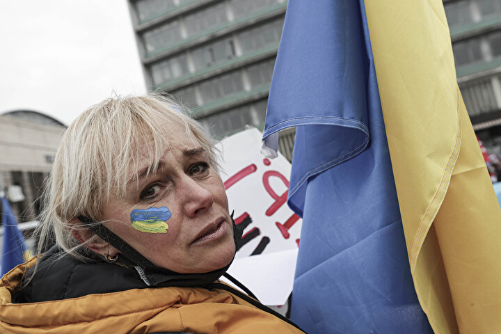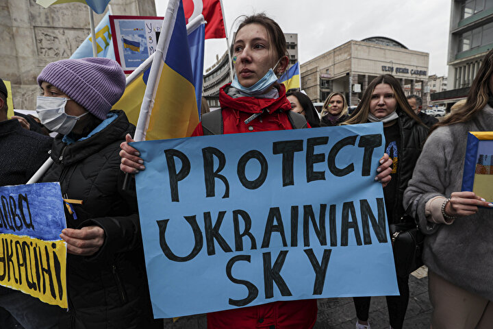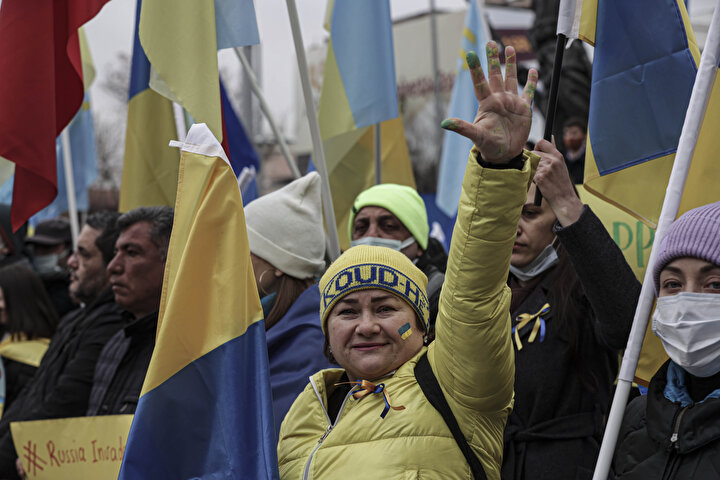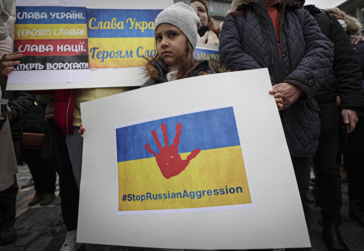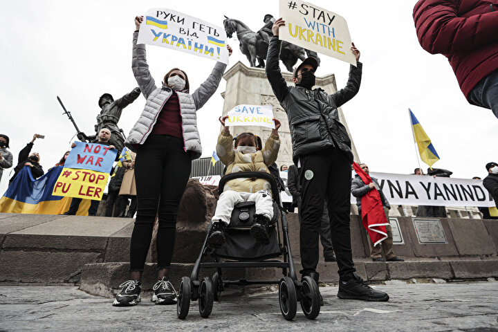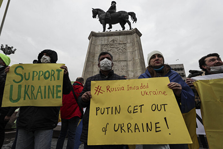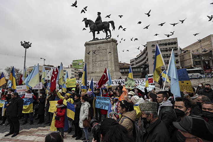 Ankara Ulus'ta toplanan Ukraynalılar, Rusya'nın ülkelerine askeri harekatını protesto etti. Kalabalık, Rusya'nın Ukrayna'ya harekatını protesto ederken, bazı kişilerin gözyaşı döktüğü görüldü.Ukrayna'nın Ankara Büyükelçisi Vasly Bodnar, "Türkiye'den yardım alıyoruz. Bugün Ukrayna'ya ilk insani yardım ulaştı. Büyükelçilik adına bir hesap oluşturacağız. Savaştan zarar gören herkese yardım etmek isteyenler oraya bağış yapabilecekler" dedi.
