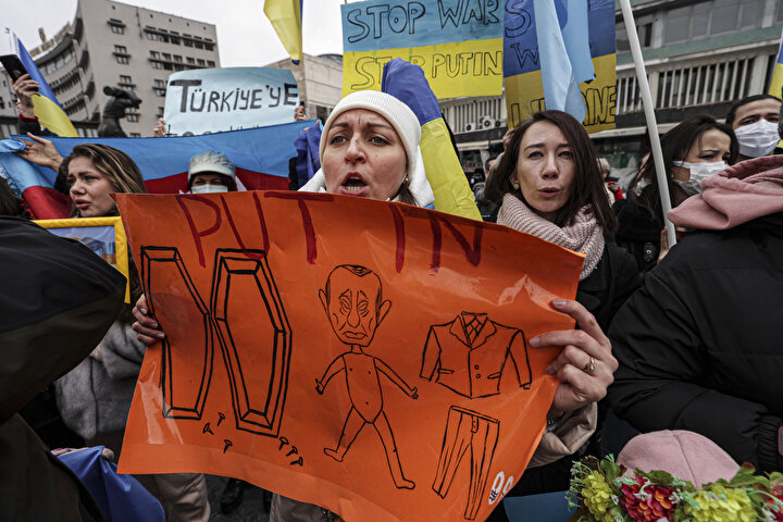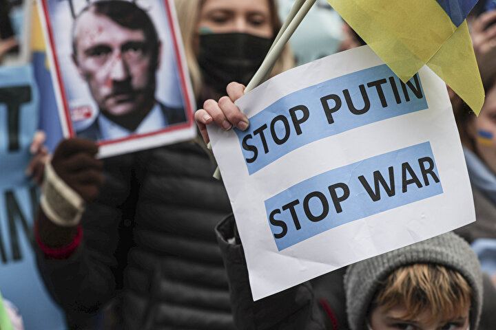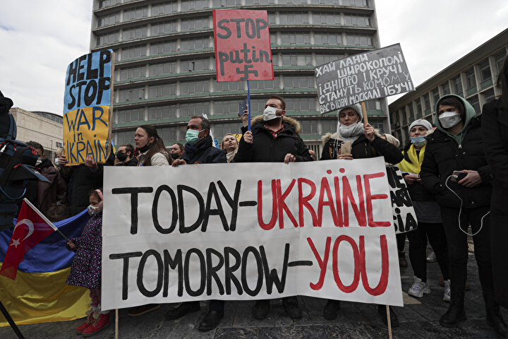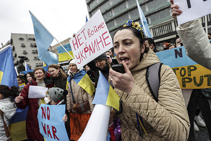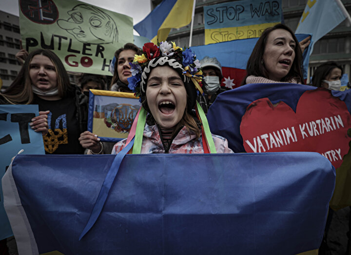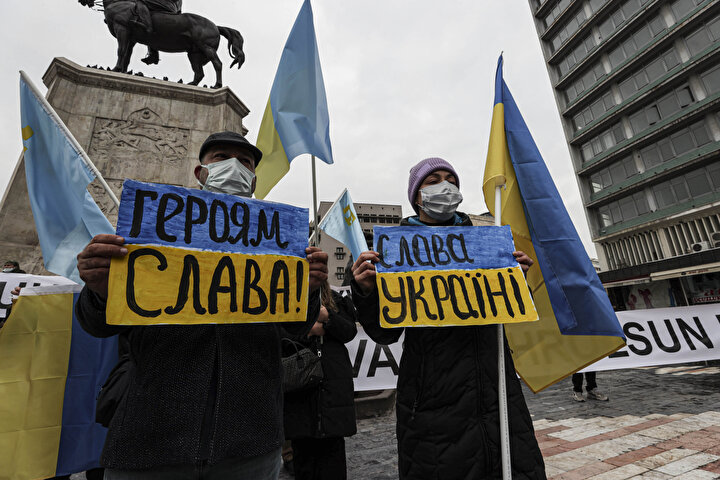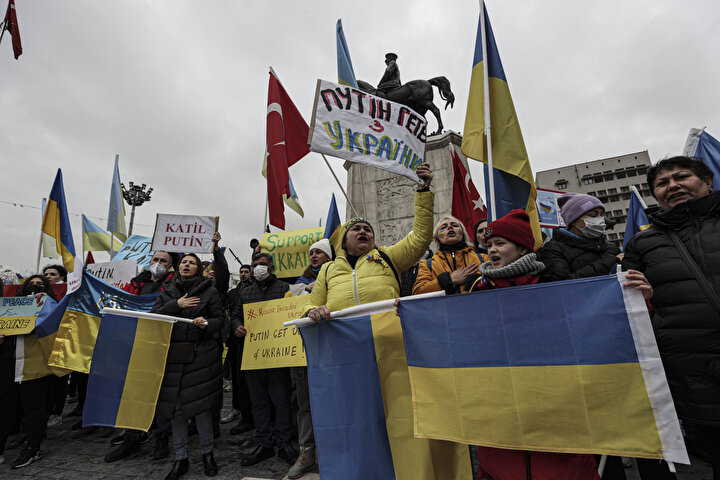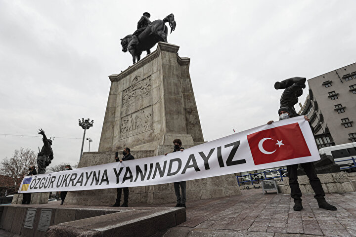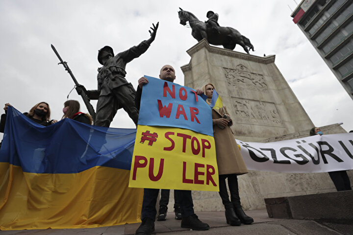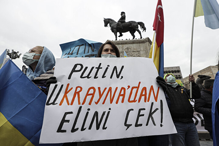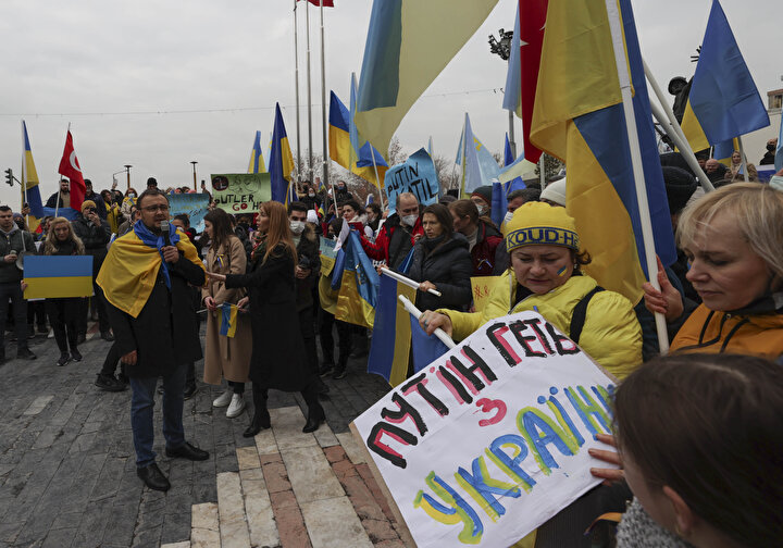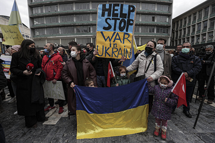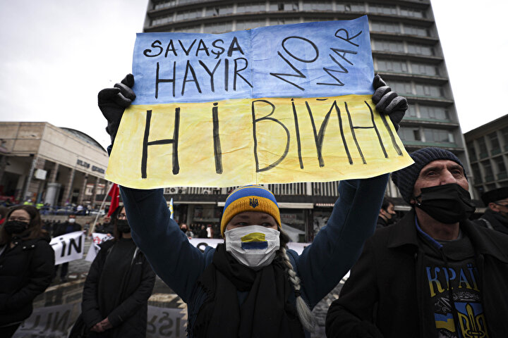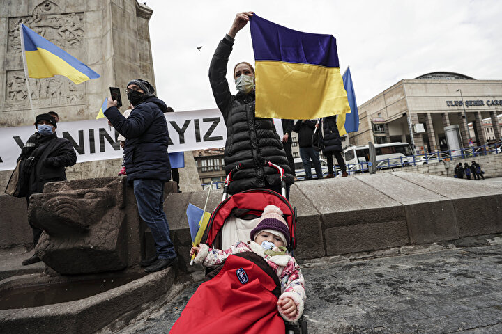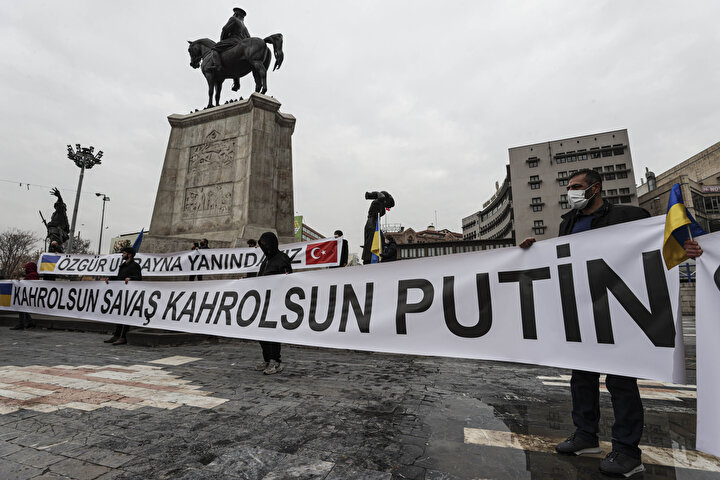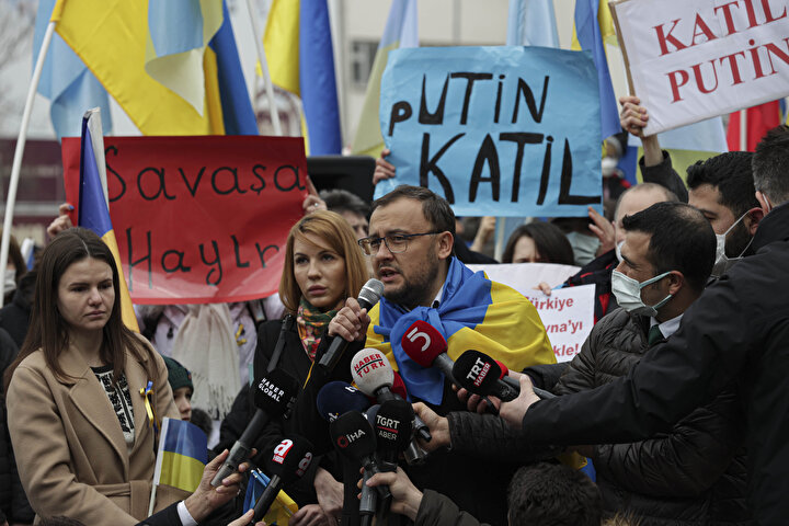 Ukrayna Derneği Ankara Başkanı Yuliia Biletska ise Ukrayna’nın saldırı altında olduğunu kaydedip, "Bağımsız bir ülkeyi yok sayan, onun halkına değer vermeyen açgözlü Putin, Türkiye dahil bütün bölge ülkeleri ve hatta tüm dünya için bir tehdittir. Bu, askeri müdahale ya da özel operasyon değildir. Bu açık bir şekilde uluslararası hukukun ihlalidir. Egemen, bağımsız ve demokratik bir ülkeye açılmış bir savaştır. Bir işgaldir. Bu süreç ve öncesinde, Ukrayna’ya verdikleri destekten dolayı dost Türk halkına ve Türkiye’ye çok teşekkür ediyoruz" diye konuştu.