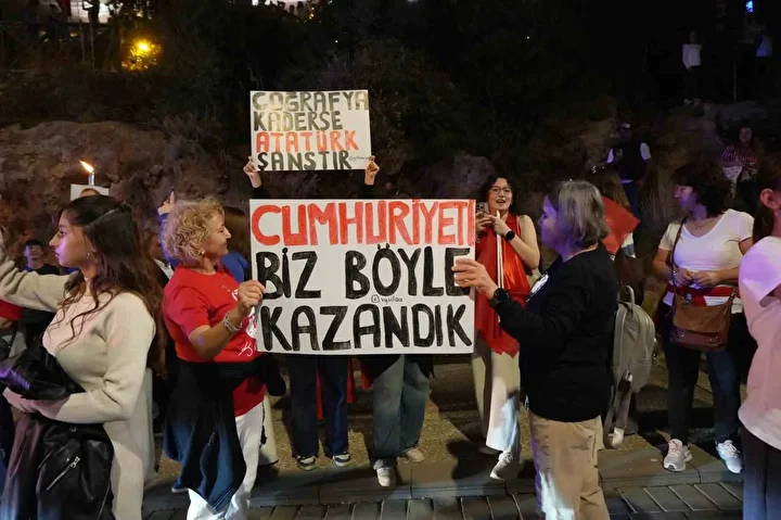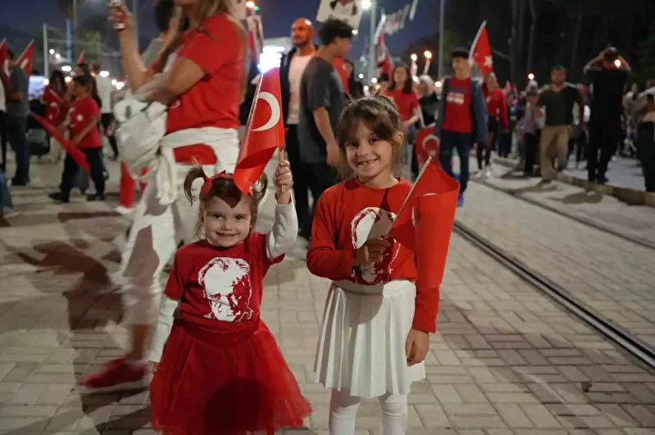 7’den 70’e her yaştan Antalyalı, sloganlar ve marşlar eşliğinde Cumhuriyet’in 102. yılının coşkusunu yaşadı.