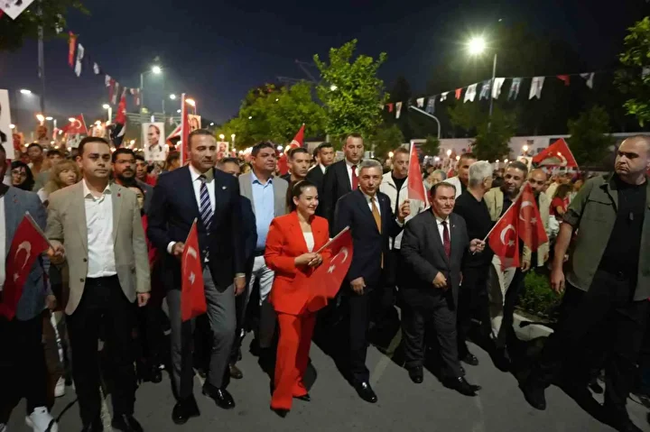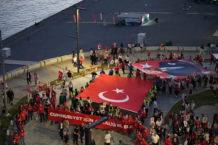 Konyaaltı Varyant’ta toplanan kalabalık yürüyüş güzergahını doldurdu. Antalya Valisi Hulusi Şahin, Büyükşehir Belediye Başkan Vekili Büşra Dirgen Özdemir, sivil toplum kuruluşlarının temsilcileri ve yüzlerce vatandaşın katıldığı yürüyüşte 400 metrelik dev Türk bayrağı taşındı.