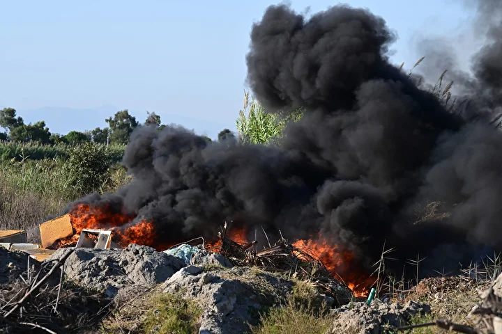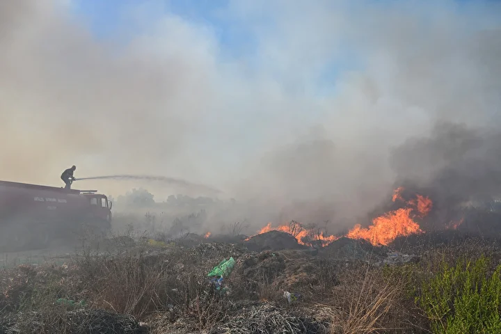 Antalya'nın Aksu ilçesinde çöp ve molozların bulunduğu alanda çıkan yangın ekiplerce söndürüldü.