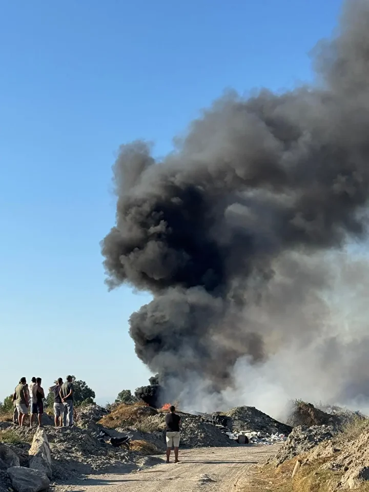 Kundu Mahallesi'nde seralara yakın bölgeye dökülen atıkların bulunduğu yerde yangın çıktı. Rüzgarın etkisiyle alevler kısa sürede yayıldı.