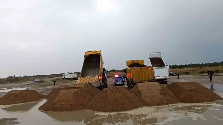 Jandarma ekiplerini fark ederek ’dur’ ihtarına uymayıp kaçmaya çalışan kum yüklü kamyonlar, yaşanan kovalamacanın ardından yakalandı. Operasyonda 3 kişi gözaltına alınırken, 2 şüphelinin yakalanması için çalışmaların sürdüğü belirtildi. Soruşturma kapsamında Ulualan mevkiinde kum hırsızlığında kullanıldığı değerlendirilen 5 kamyon ve 3 kepçe otoparka çekildi. Şüphelilerden Seydi İ. sevk edildiği adliyede tutuklanarak cezaevine gönderildi.
